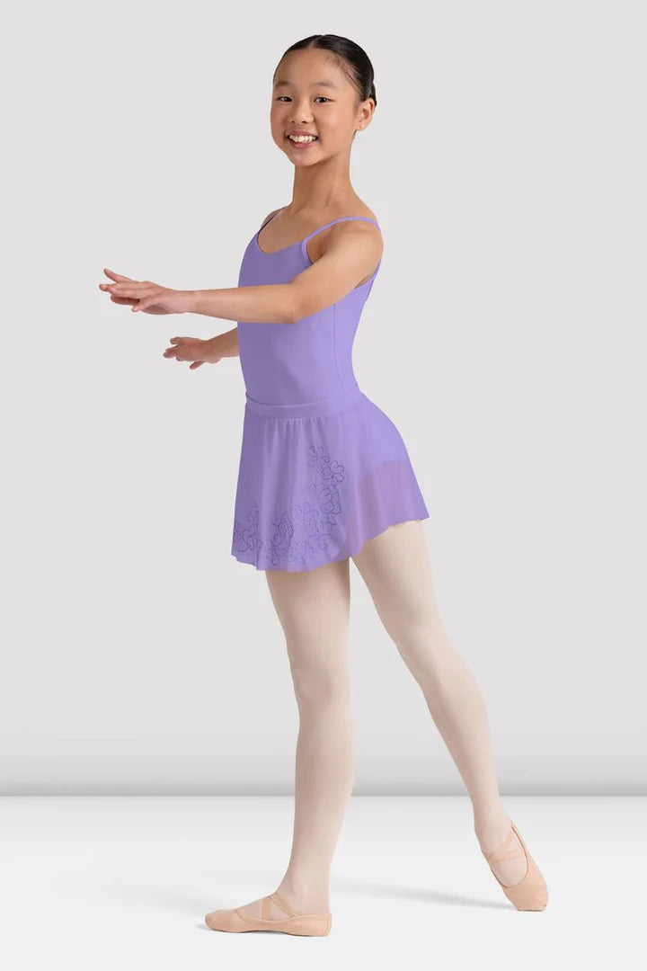 Our Girls Angella Floral Mesh Skirt features delicate floral embroidered details in a fixed wrap shape with convenient pull on styling. Discover our delightful Camellia dancewear collection, each piece features soft, elegant designs that move with the body, accented by charming camellia floral embroidery.
