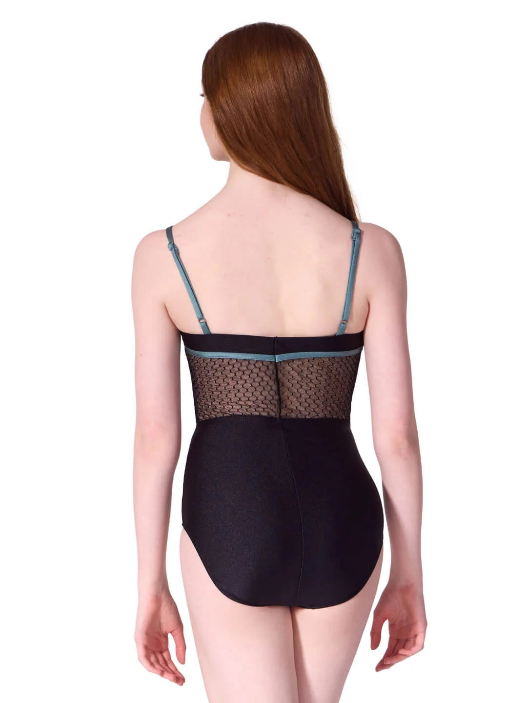 The Cherish Camisole Leotard is all about fun, flirty style with a touch of elegance! This leotard features a flattering sweetheart neckline with a wide V-back and adjustable straps that give you a perfect fit, while the contrast binding along the back adds that special finishing touch. The diamond mesh back bodice adds a playful pop of texture, and with a fully front-lined design, you’ll feel as good as you look. The ballet leg line gives you a sleek, graceful look, whether you're dancing or just having fun.