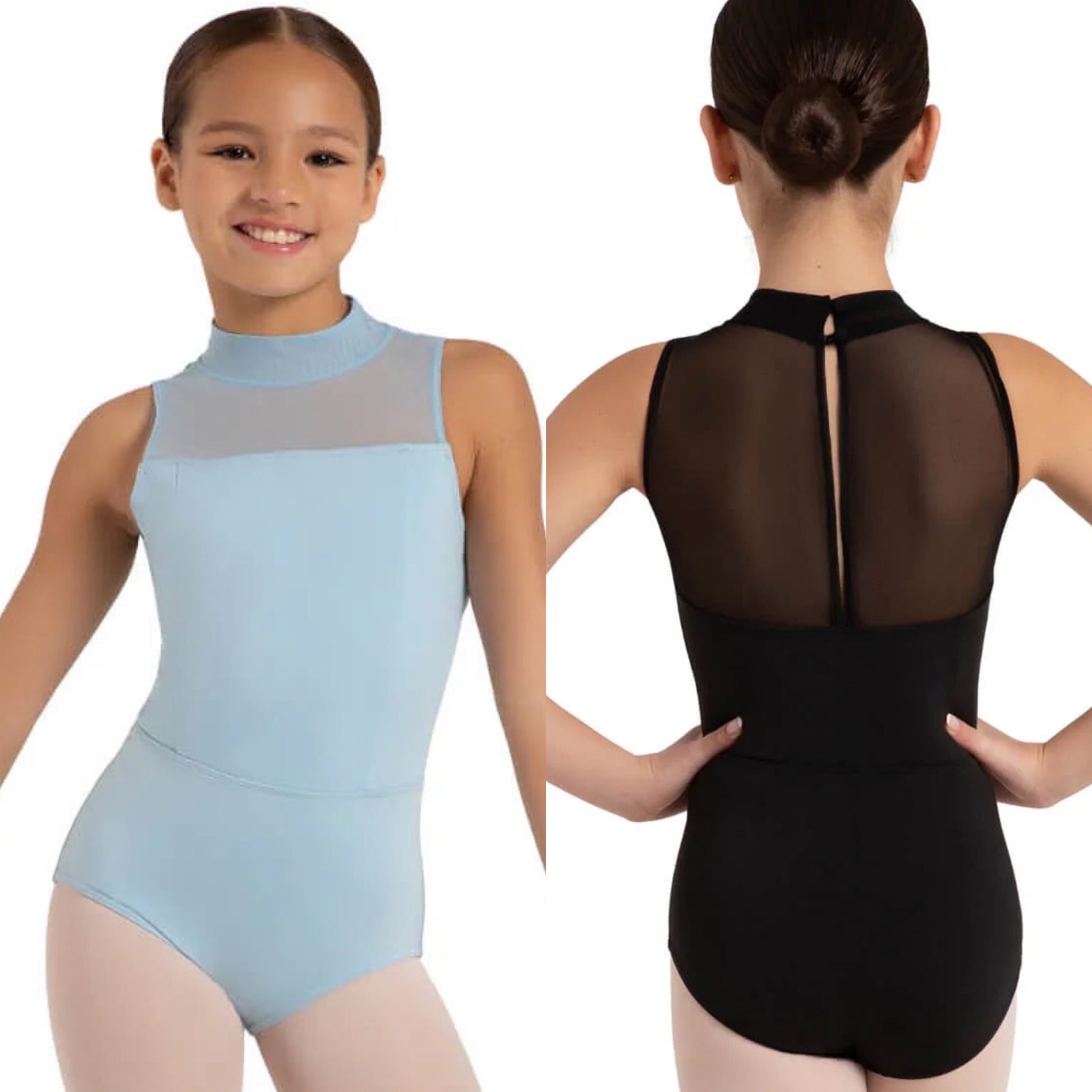 Shine like a superstar in the Starry Leotard! Made of a soft polyester and spandex blend that fits like a dream. The high neck design with a single-layer mesh yoke adds a touch of sophistication, while the bodice princess seams shape you up for your grand performance. Featuring a slight scoop back and mesh opening that allows for flexibility to twirl and spin. The double-layer mesh collar adds a bit of edge to your glam, and the two-button back neck closure keeps everything in place. Fully front-lined so you can dance with confidence and style. Pair with the Sky Skirt or Sunburst Short to complete the look. Available in child sizes only.