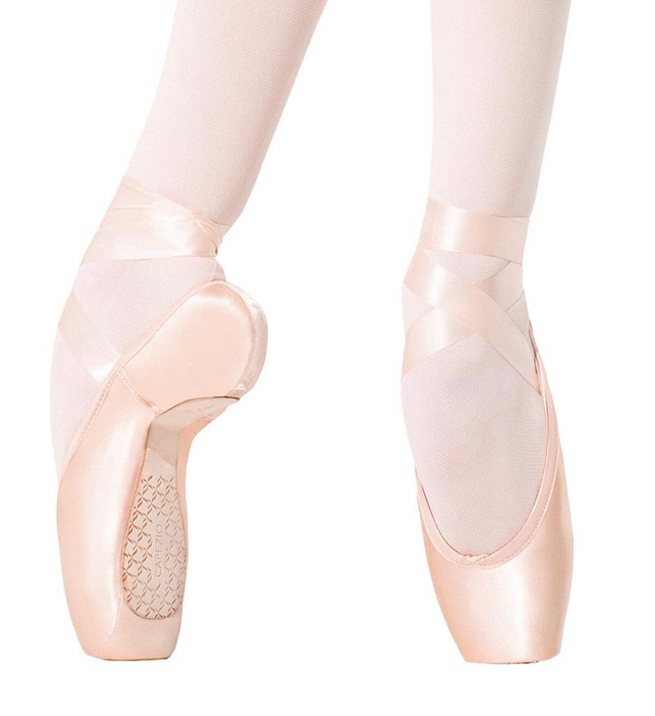 - Scored ribbon motif on the ball of the foot aids with traction to the floor