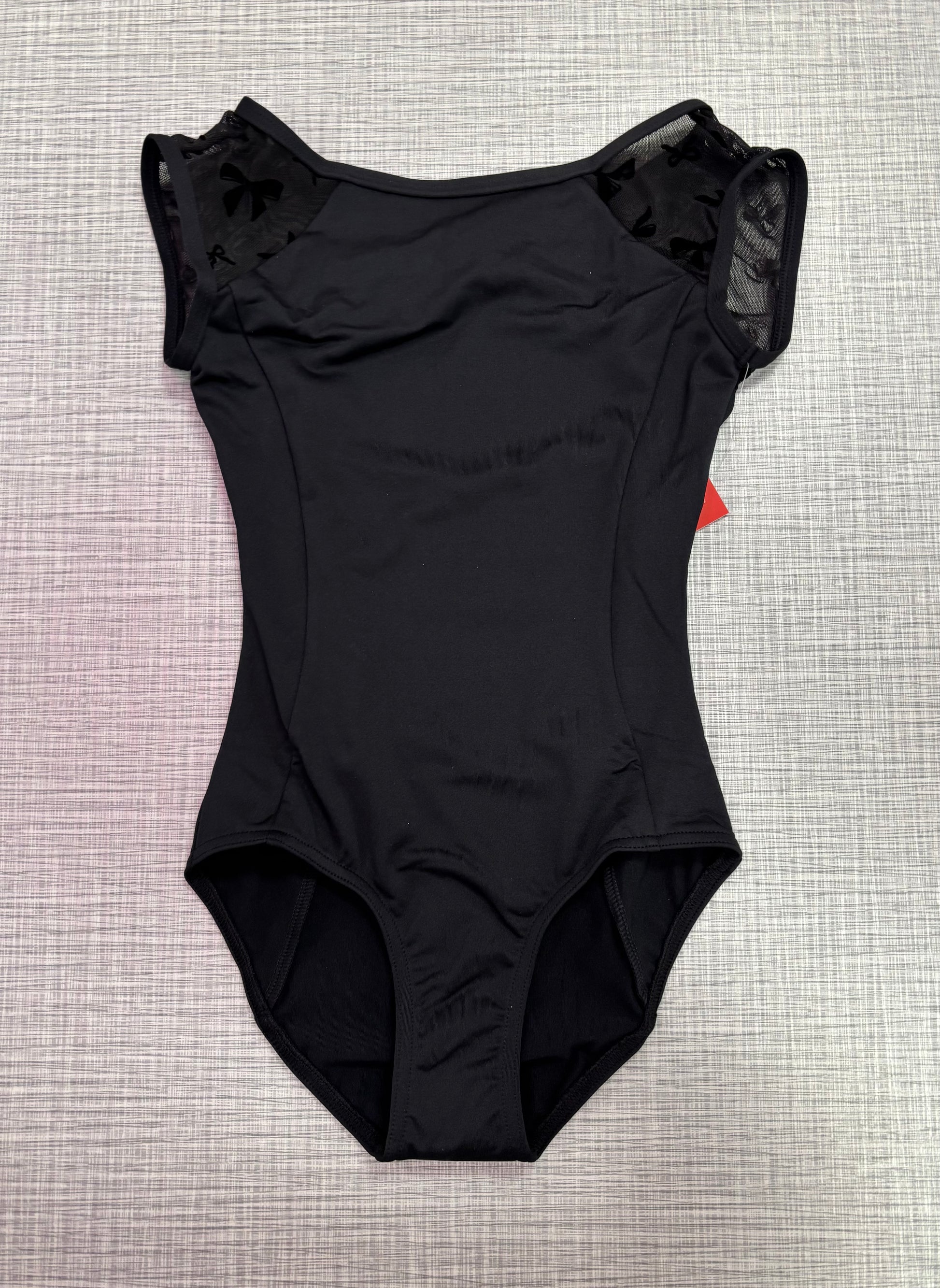 The Encore Leotard from the limited edition Take a Bow collection is designed for dancers who love to dazzle! This charming raglan cap sleeve leotard features a stylish scoop front and enchanting bow pattern mesh sleeves that add a touch of whimsy. With flattering princess seams in both the front and back, a soft V back neckline, and a ruched center back, this leotard ensures a comfortable fit. The bow pattern back mesh yoke and lower back opening make for delightful details.
