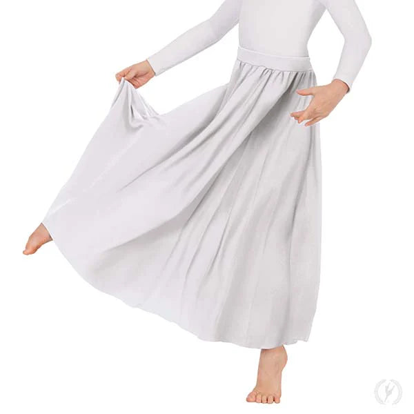 A Polyester full circle skirt with beautiful movement quality and customizable length (won't fray when cut!). Pair this popular praise skirt with any color matched or complementary color leotard. This circle skirt features a covered floating elastic waistband that maximizes stretch and allows you to adjust the gather of the skirt to your desired fit.