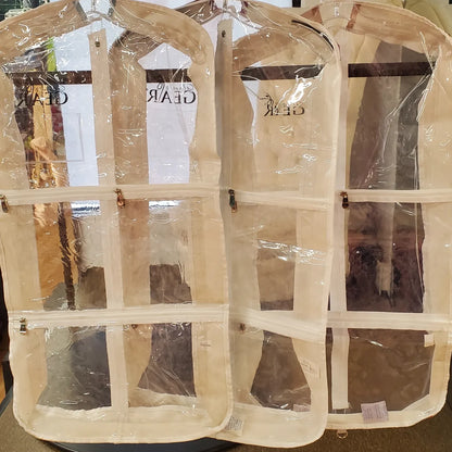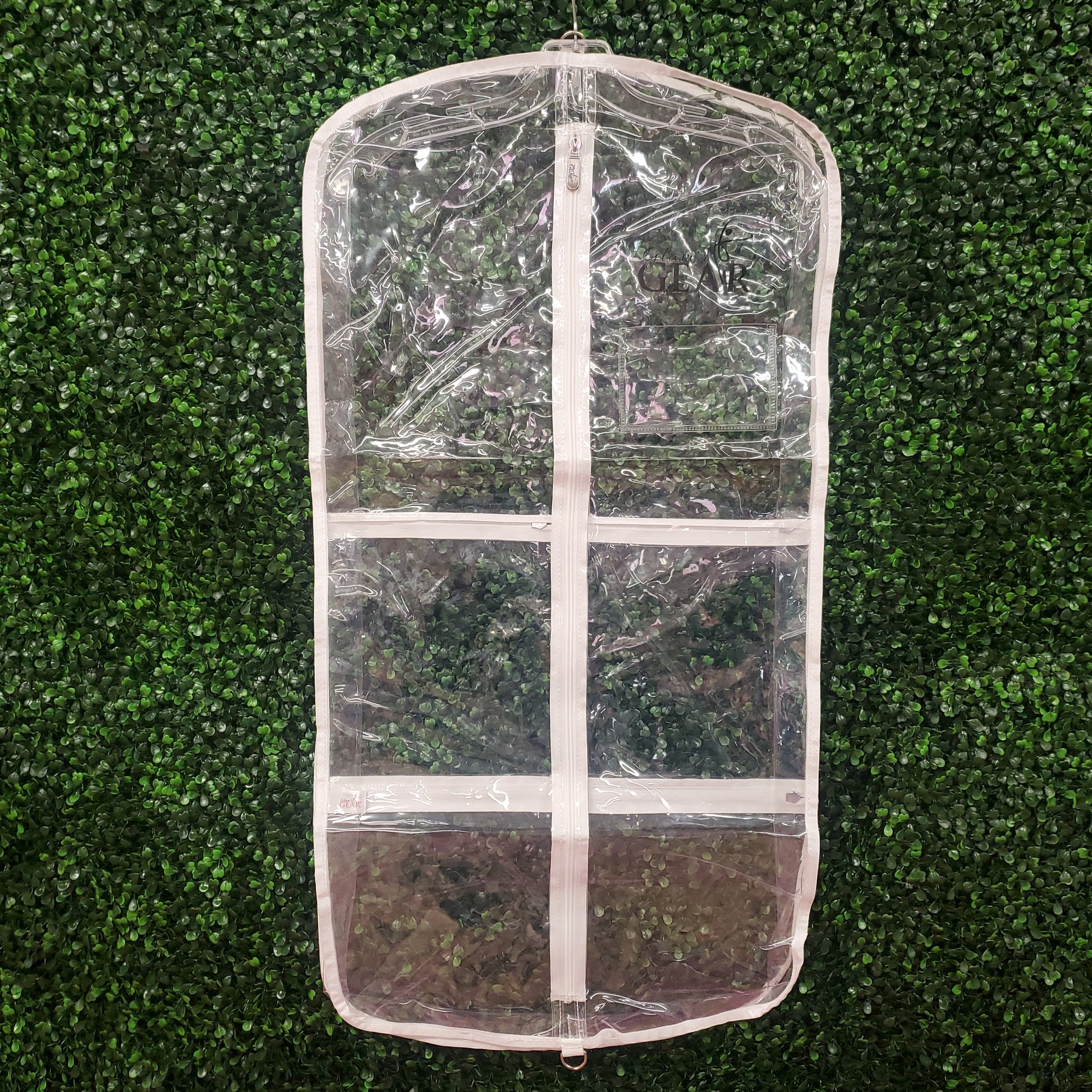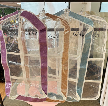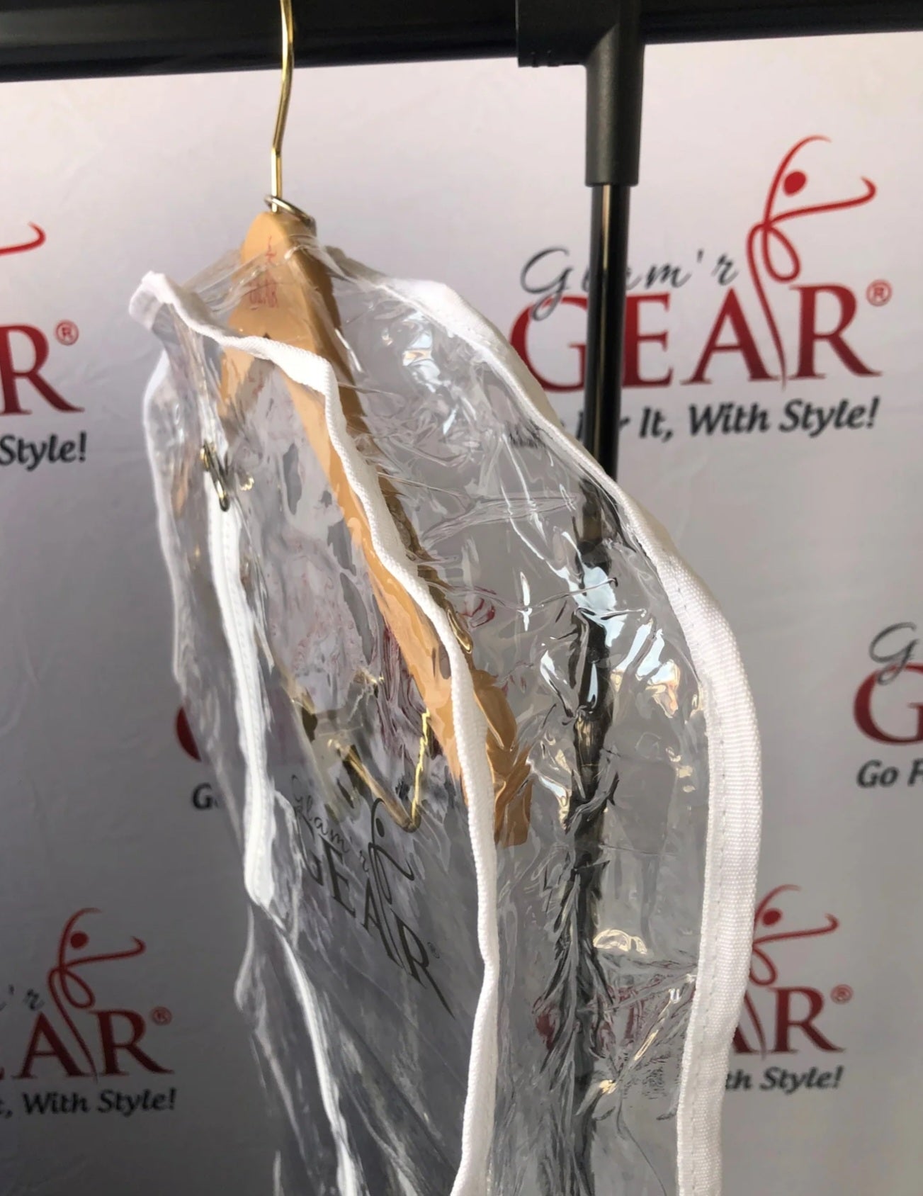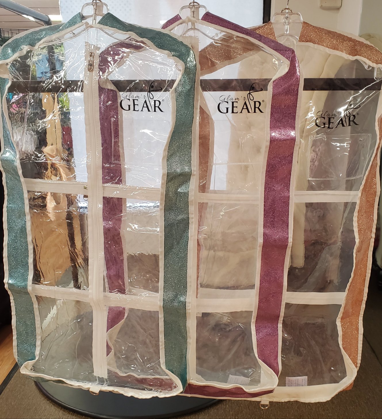 These are transparent bags, that hold your valuable costumes, dresses, and accessories. All garment bags (except transparent) have 2.5" gussets. Glam'r Gear Garment bags come in several styles: