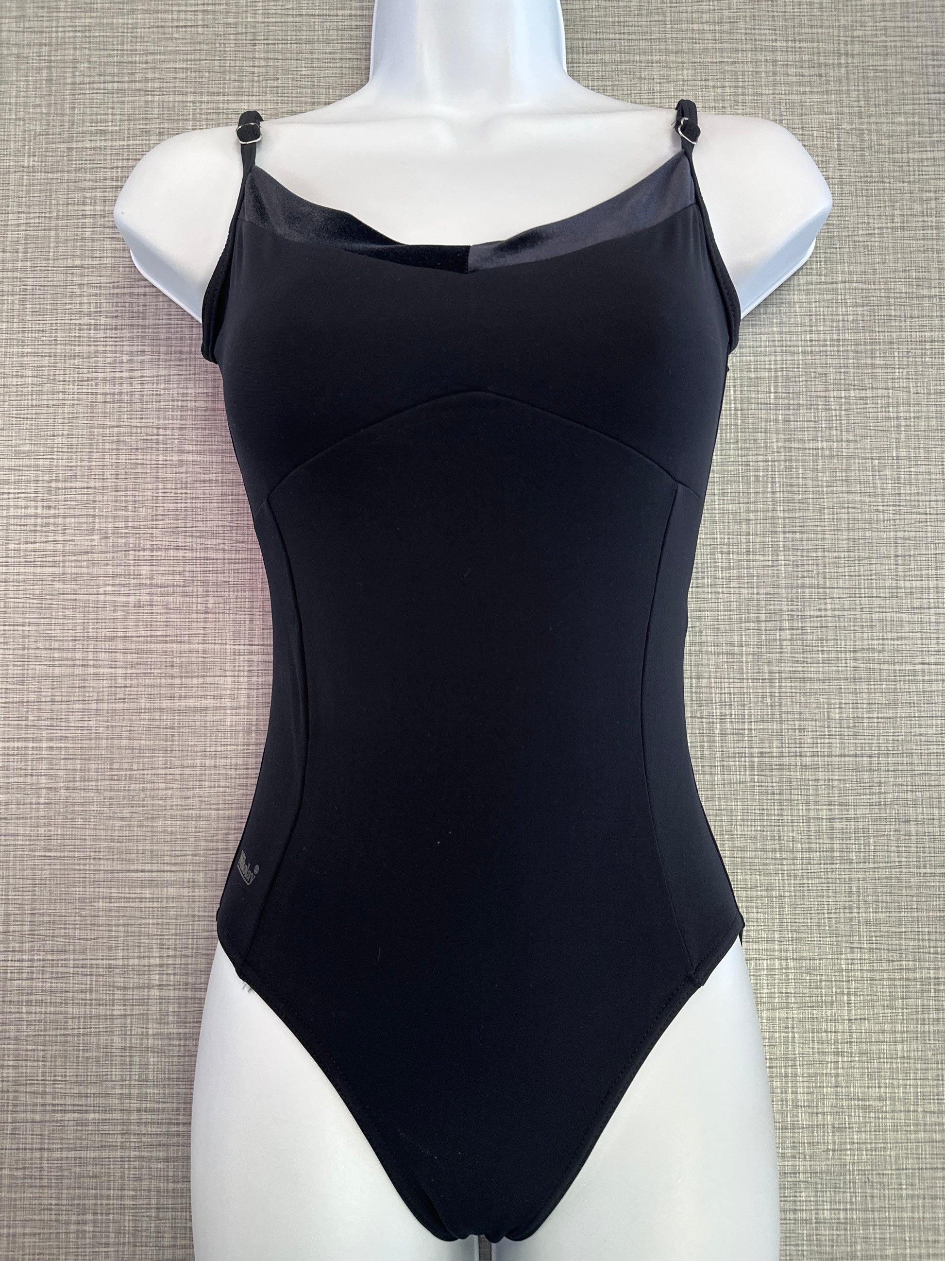 The curved empire waist and front princess seams create a flattering silhouette, while the adjustable straps ensure a perfect fit. A one-inch wide velvet trim in the back forms a graceful V-cut, adding a chic and sophisticated finish to this stylish piece.
