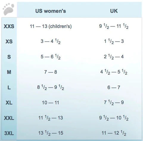 Find that measurement in the chart below. If you have feet on the thicker side, or are in between sizes, order the larger size. They’ll stretch to their final snug fit after about 6 hours of wear.