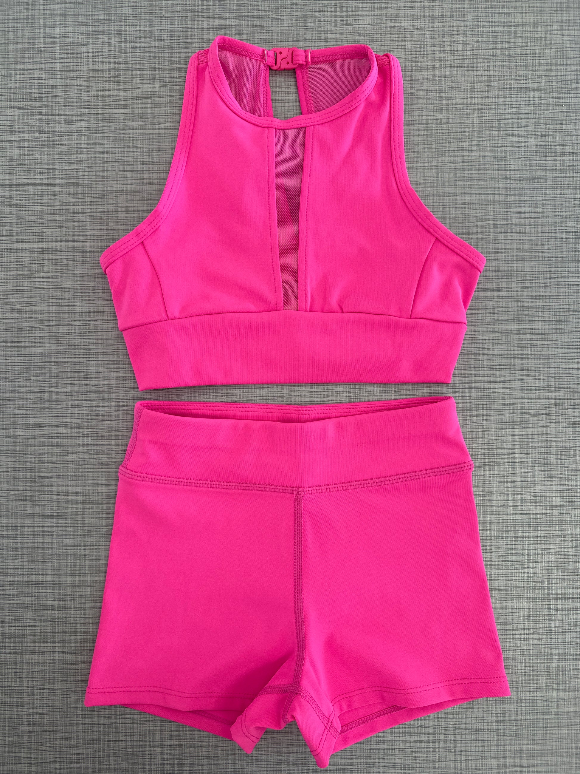 Our mid-length short features a smooth high waist, that stays in place and doesn't roll. Waistband can be folded down and will also stay in place. The Poly blend fabric adds just the right amount of compression and support.