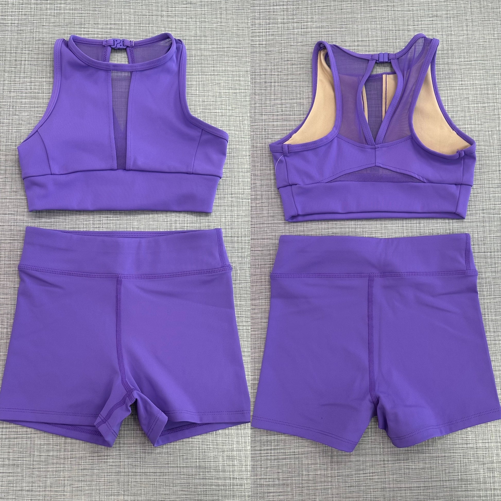 Cutaway tank top with deep V-mesh insert and stylized mesh block detailing at back. Fully front lined.