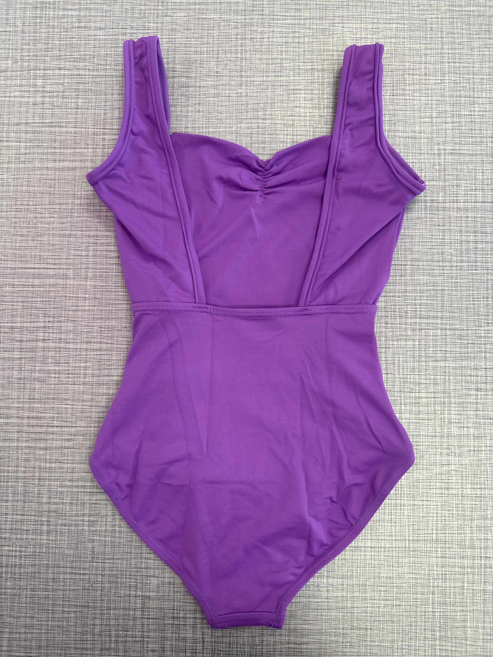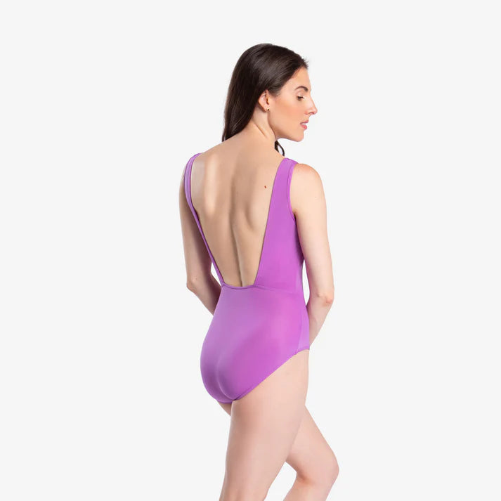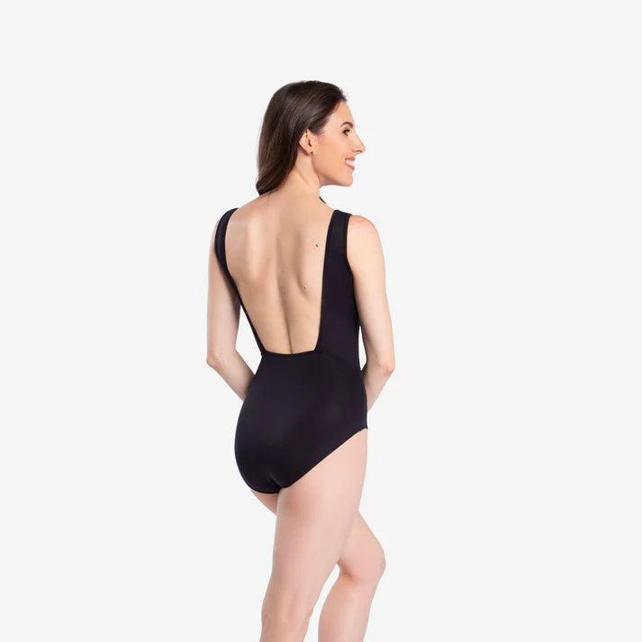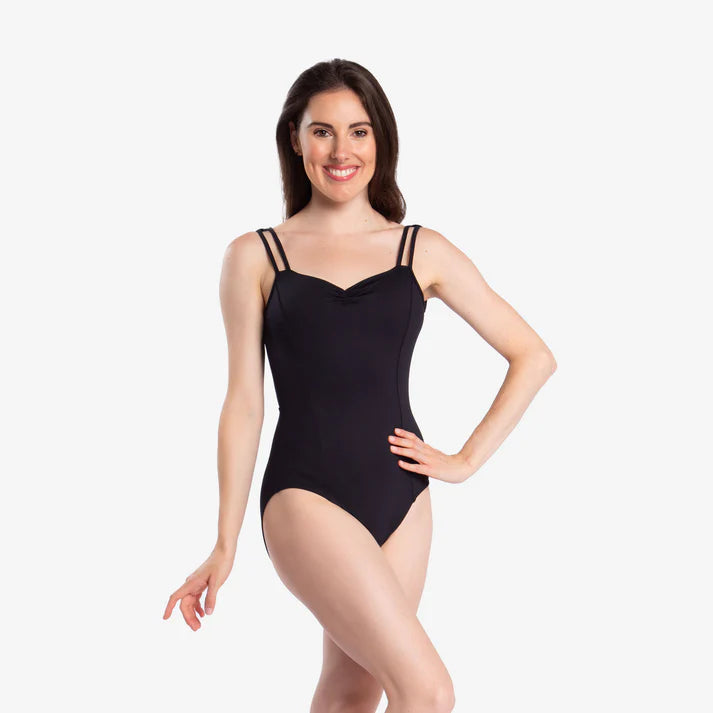 Clean in front, wow in back. India’s double straps frame the shoulders while a wide low scoop lets your port de bras breathe. The smooth microfiber hugs without squeezing, so you can focus on combinations—not your leotard. Minimalist, flattering, and totally rehearsal-ready.