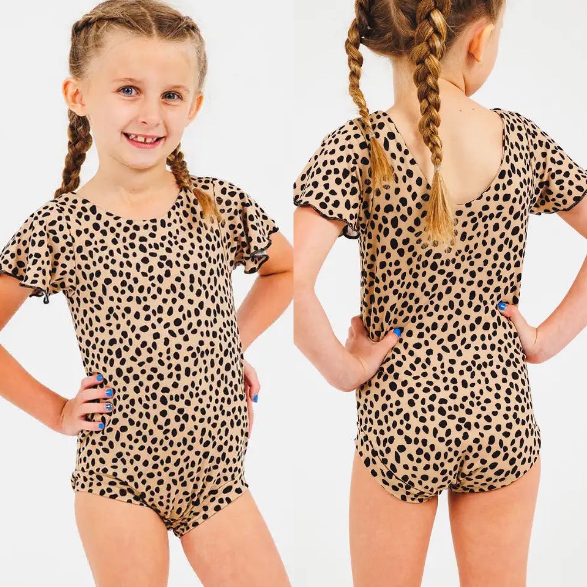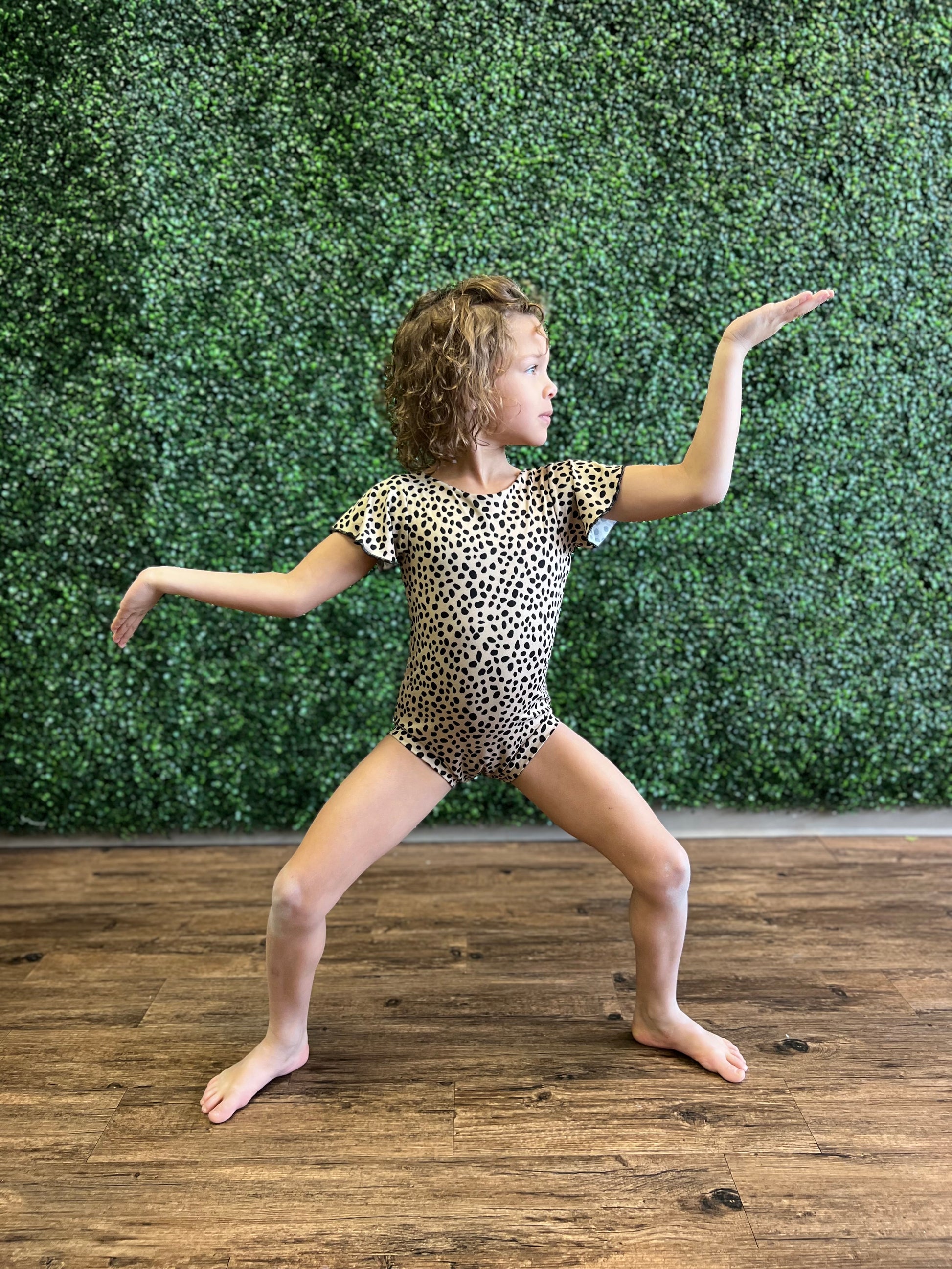 The Willa B Leotard features flutter sleeves, a sweet swoop back, and thick leg bands for complete booty coverage. Fully lined and made from the softest fabrics, this Leotard is perfect for dance, gymnastics, tumbling, and so much more!