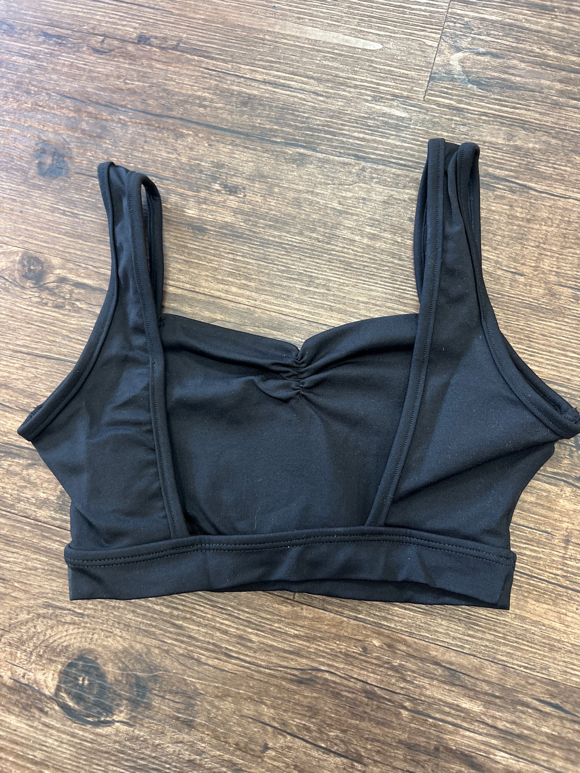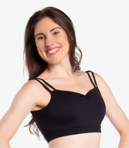 Meet your new go-to dance bralette – the perfect blend of style and support. Designed with a flattering ruched front and delicate double straps, this top moves effortlessly with you, whether you’re perfecting pirouettes or powering through a workout. Pair it with your favorite dance shorts or leggings, and get ready to shine!