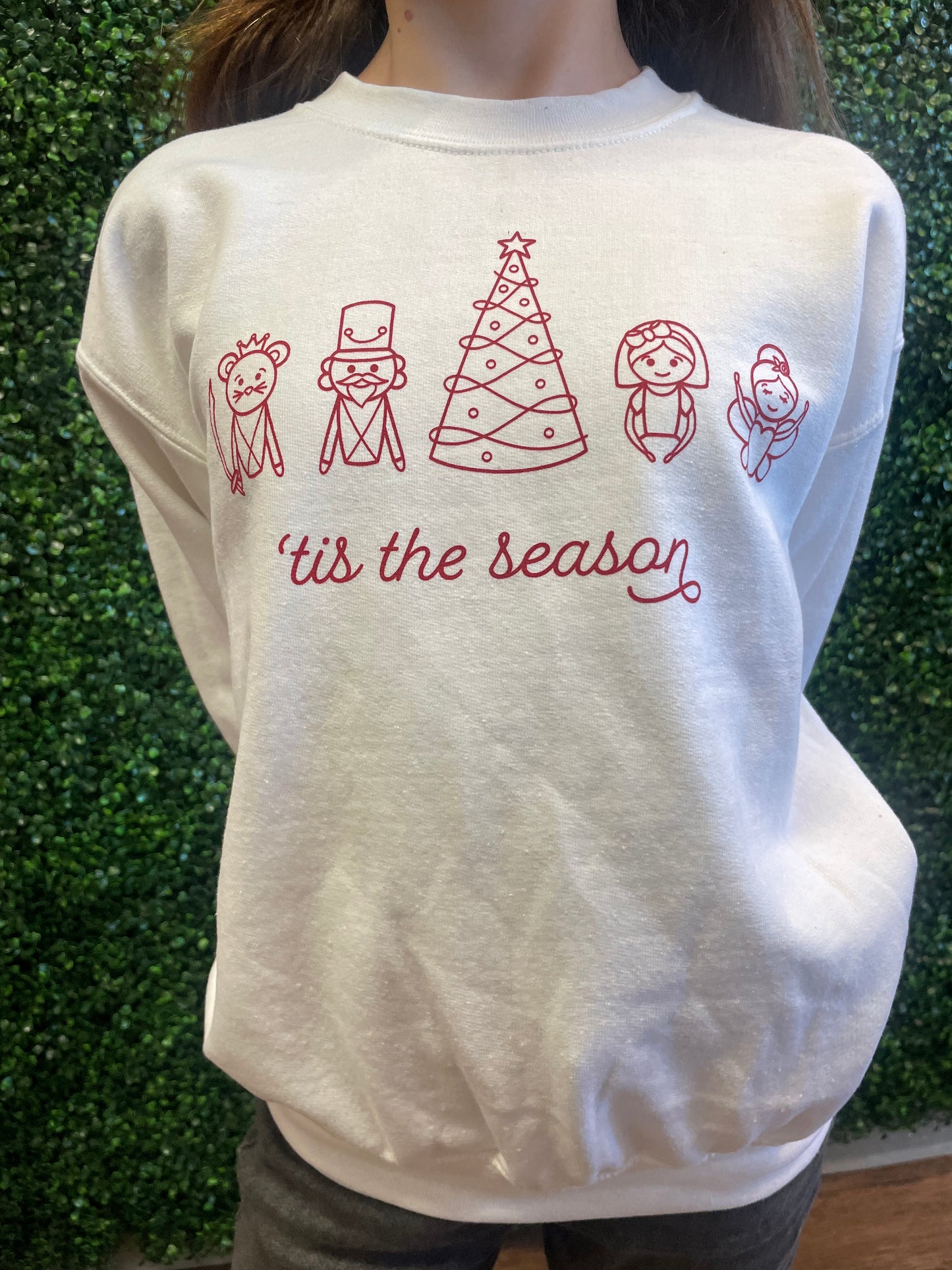 Seems like Nutcracker season never ends - and this charming crewneck celebrates the ballet's beloved characters! Show your support for Mouse King, Nutcracker, Clara, and the Sugarplum Fairy by sporting this holiday-ready style.
